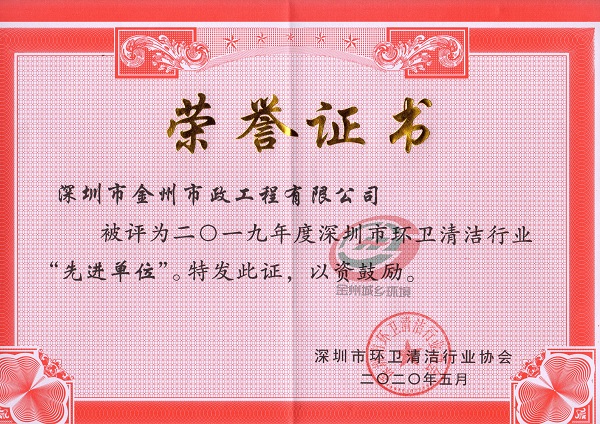 2019年深圳环卫清洁协会先进单位
